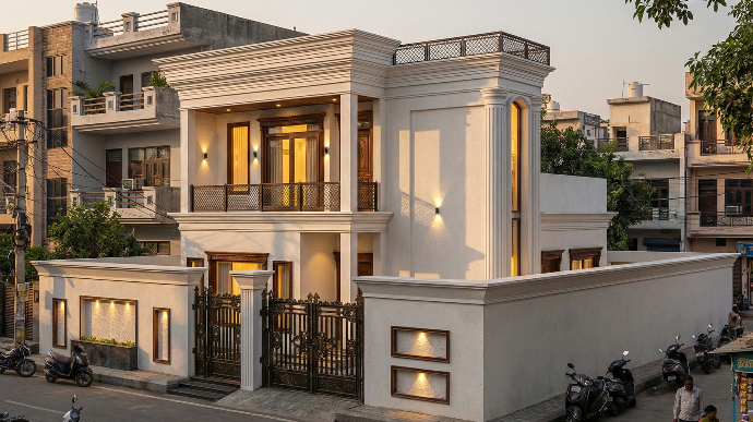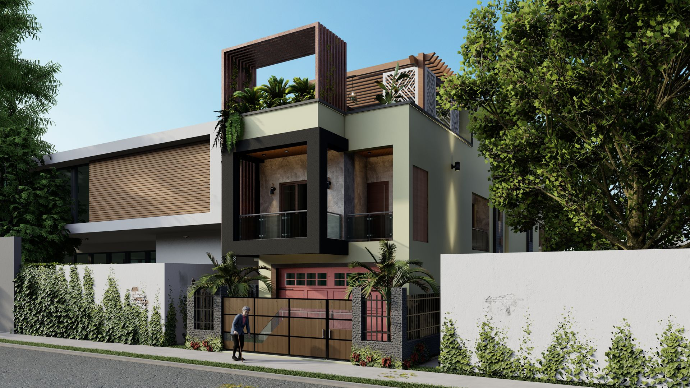 Haider Bari in Kolkata exemplifies modern, contemporary architecture, featuring bold, boxy designs and a minimalist aesthetic that creates a sleek and refined look.
